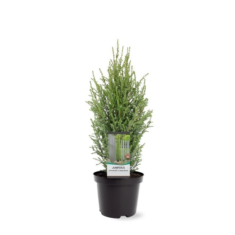 Juniperus comm. Compressa, ook wel dwerg jeneverbes genoemd, is een mooie groenblijvende conifeer die heel dicht vertakt. Mooie zuilvormige groeiwijze. Deze Juniperus is goed winterhard.